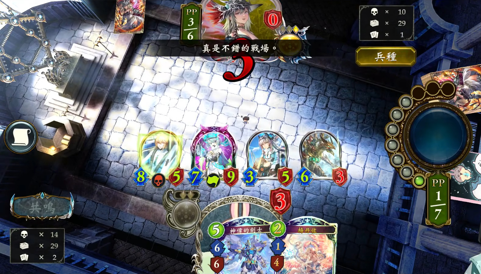 争夺场面,追求每回合都场面最大化,但也要适当保留特定牌以达成配合,例如神伟的剑士+生产器械,勤学工匠·霍弗乐+百兽狮王·格莱亚斯等。