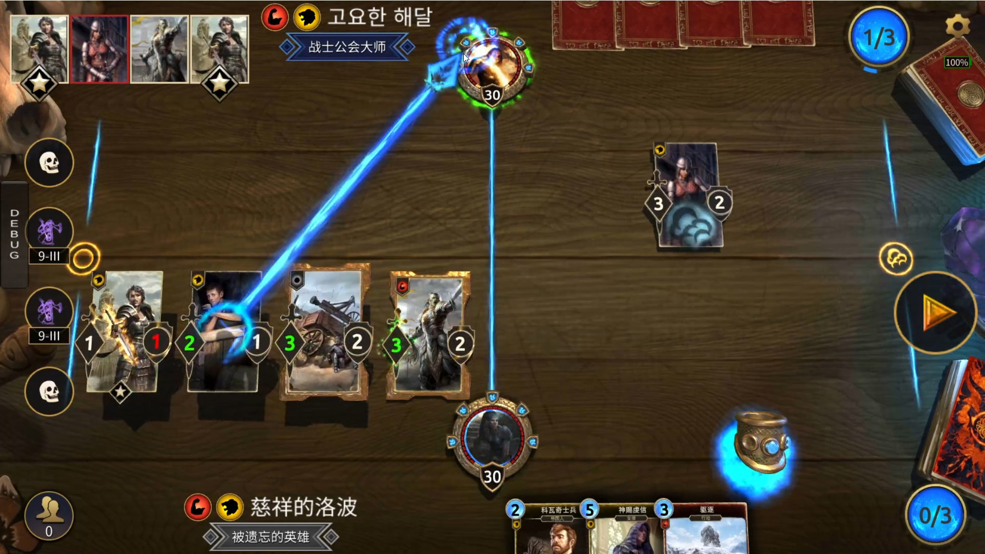- 3费回合:0费诺德战士(临时防御工事)+狮子=3费出动狮子