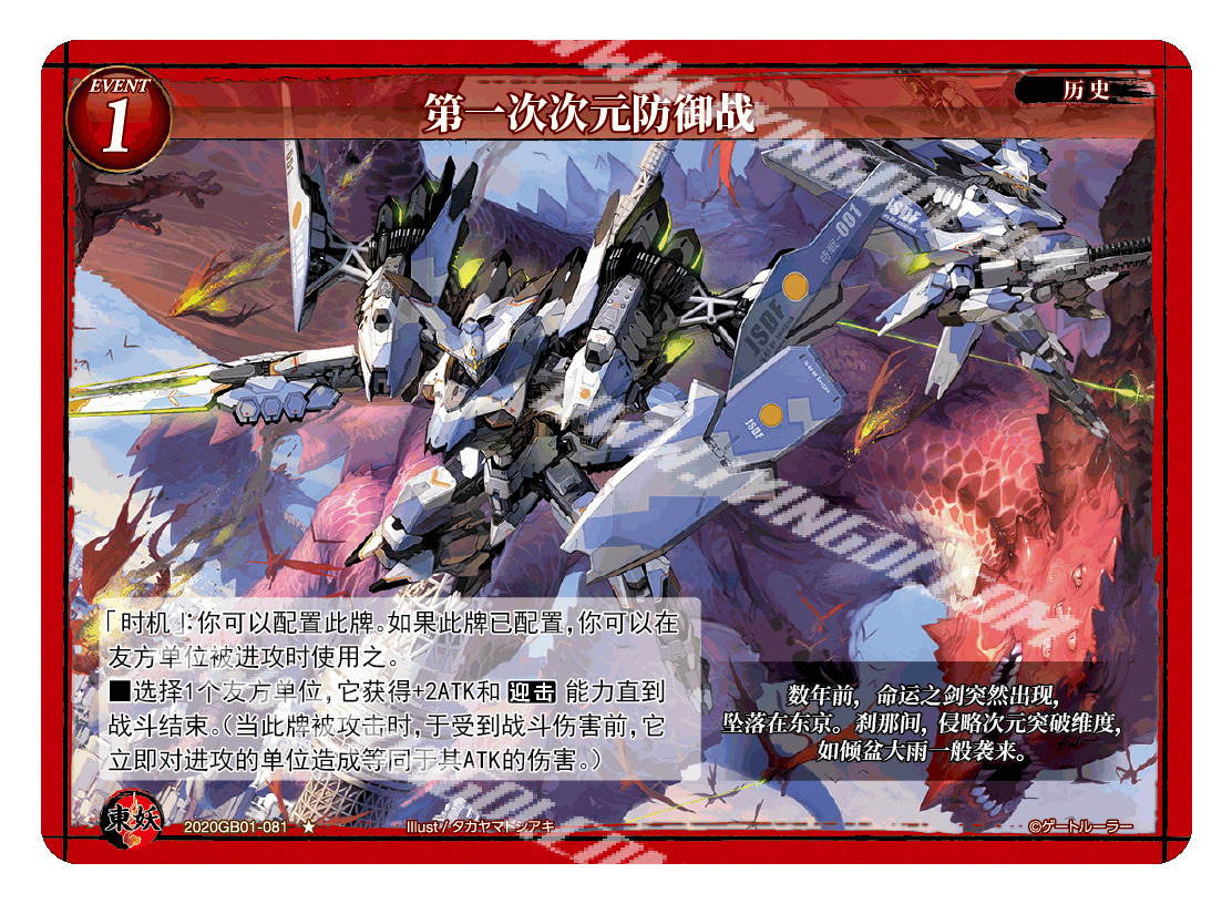 紧接着,发生超巨大的次元断层(注3)。以全长1公里的巨大红龙为首,出现了侵略次元的尖兵们。这就是第一次次元防卫战。