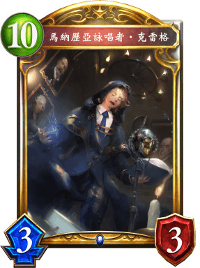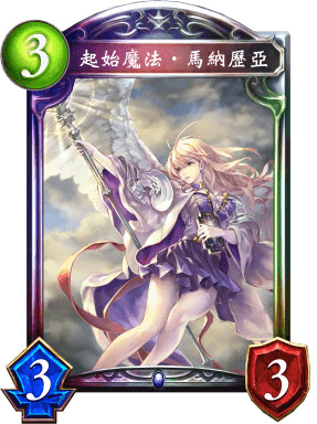 自己的回合开始时,如果为第1回合,则会使自己手牌中与牌堆中的全部法术卡获得马纳历亚兵种。每回合1次,自己的随从进化时,随机使1张自己手牌中的马纳历亚卡费用-1。