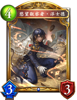 每当自己使用法术卡时,给予敌方的随从全体1点伤害。每当自己使用马纳历亚卡时,回复自己的主战者1点生命值。