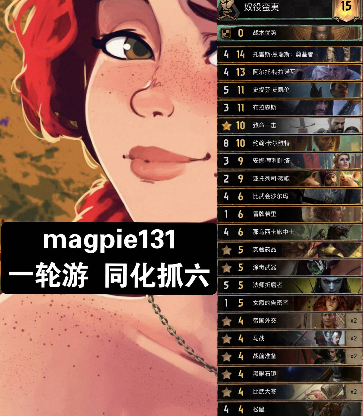 本期卡组链接可看:https://tournaments.playgwent.com/tournament/0752c5292e077086069844124bd64b78/participants