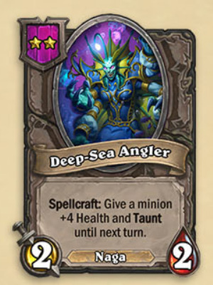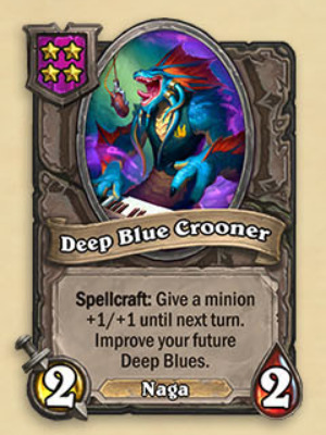 - 4星2/2纳迦,塑造法术:直到下个回合,使一个随从获得+1/+1。提升你此后的Deep Blue效果