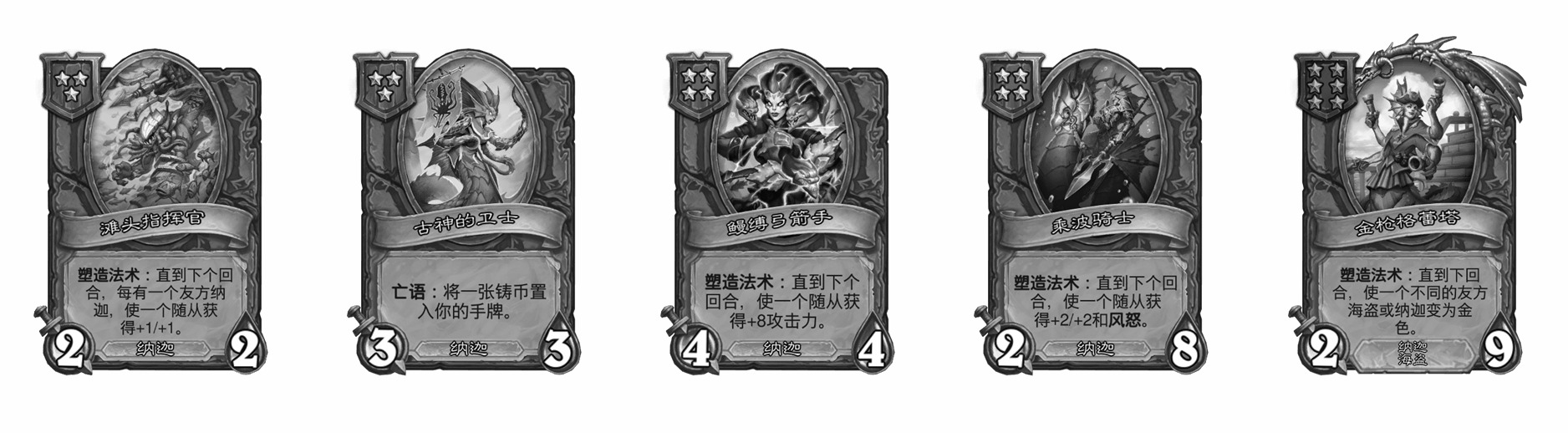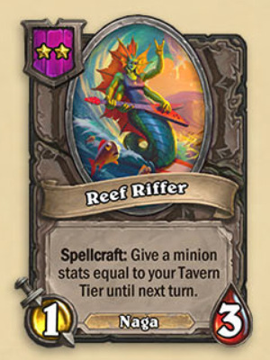 - 2星1/3纳迦,塑造法术:直到下个回合,使一个随从获得等同于你的酒馆星级的属性值