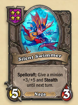 - 4星5/3纳迦,塑造法术:直到下个回合,使一个随从获得+3/+5和潜行