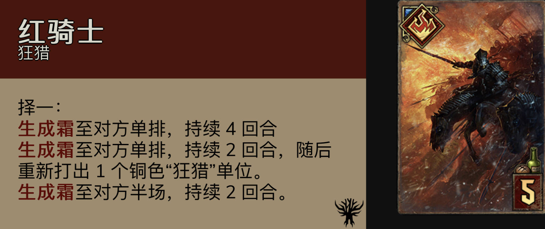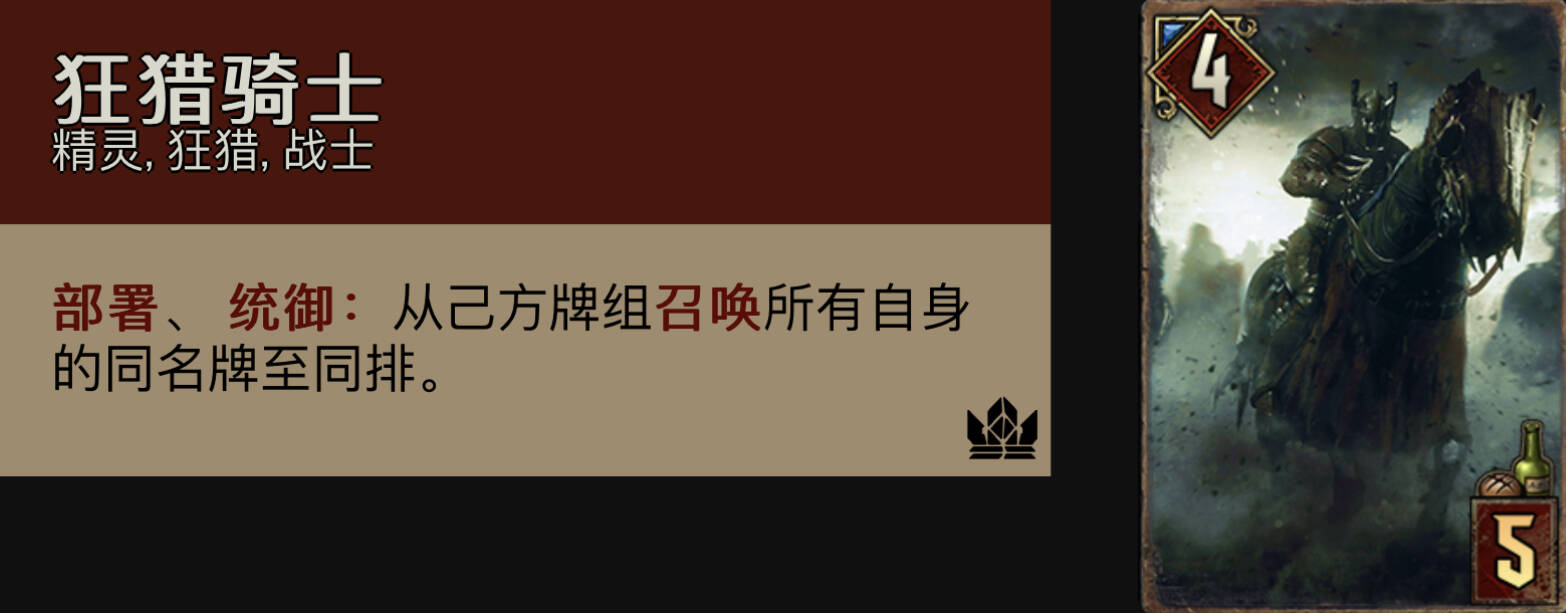 狂猎骑士:可充当先手牌(一张先手牌都没有的情况下使用或者对手有气宗的手段才会这么打),大部分情况都是调度回去r3出3骑士。