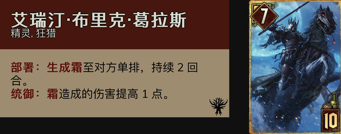艾瑞汀:两排的霜都能打到对手时再下收益最大,非常强的一张牌,也是会被对手优先处理,可用于击杀5血萨琪亚和5血助祭。