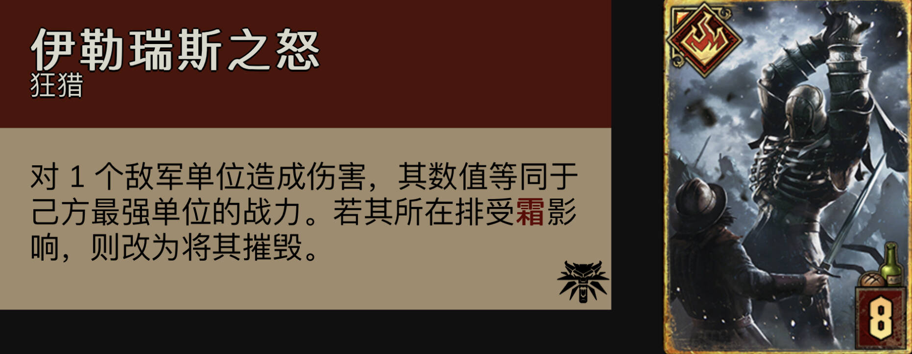 伊勒瑞斯之怒:8p还算便宜的去除,主要用来杀先帝,达娜梅碧,打水手时千万不要前面交这张牌,一定要用来防龙龟和奥拉夫,打其他的能早点交就早点交,不然会卡霜的收益。