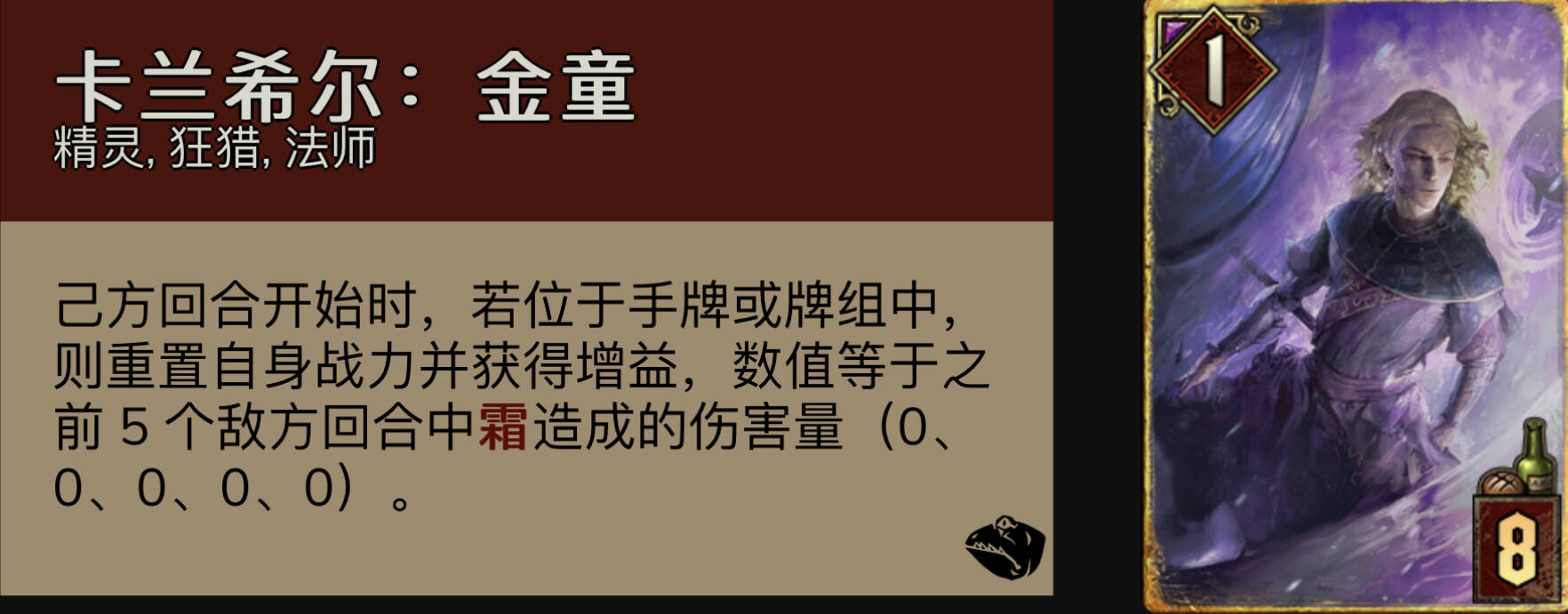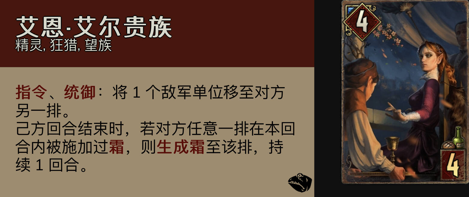 霜怪:内战拼抽牌,如果手牌够好,r1存足够的霜是可以在r2将对手莽穿的,但一般情况下都会拖进r3打一个中长,内战牌序是固定的,第一手奥贝伦王出贵族,第二,三手都是小雾妖,第四手艾瑞汀,第五手开门,第六手导航员接红骑士(一般都会在r2存提尔纳丽雅),后面就是红骑士,金童,大锤的牌序,主要还是看谁组件摸得齐。