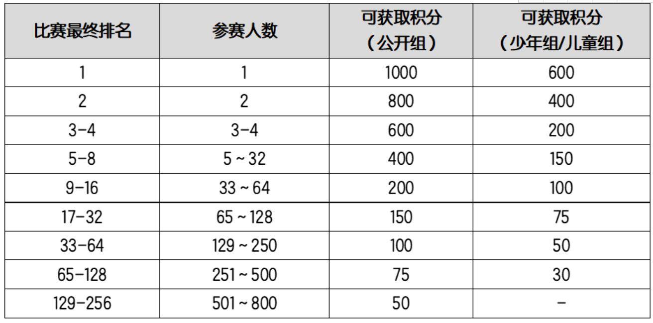 ※可获取的积分依据当场比赛的实际参赛人数及比赛最终排名来决定。
