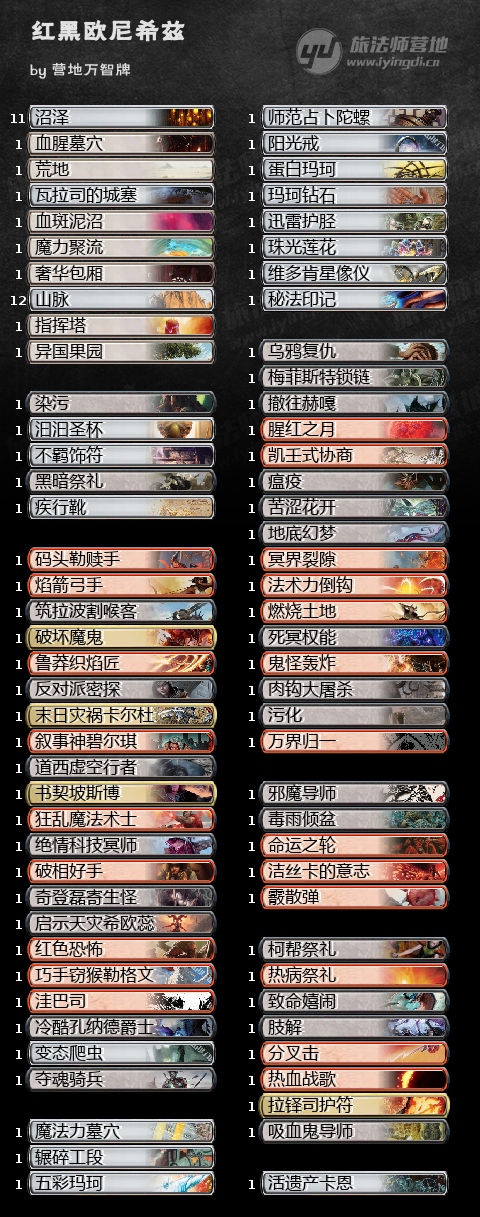 此外,人气颇高的欧尼希兹在EDH中也开始受到关注,是目前新系列中人气最高的指挥官,主要思路就是2个
