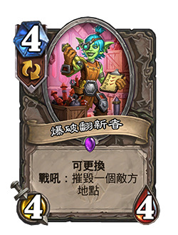 开发者注:这张牌在新近流行开来的大哥瞎里很突出,其强力效果使其成为套牌里的最强单卡之一。其实它本身并不需要也成为一个威胁。我们为大哥瞎终于变得强力可用而感到高兴,并希望这个卡组形态能在这项微调后继续可用。