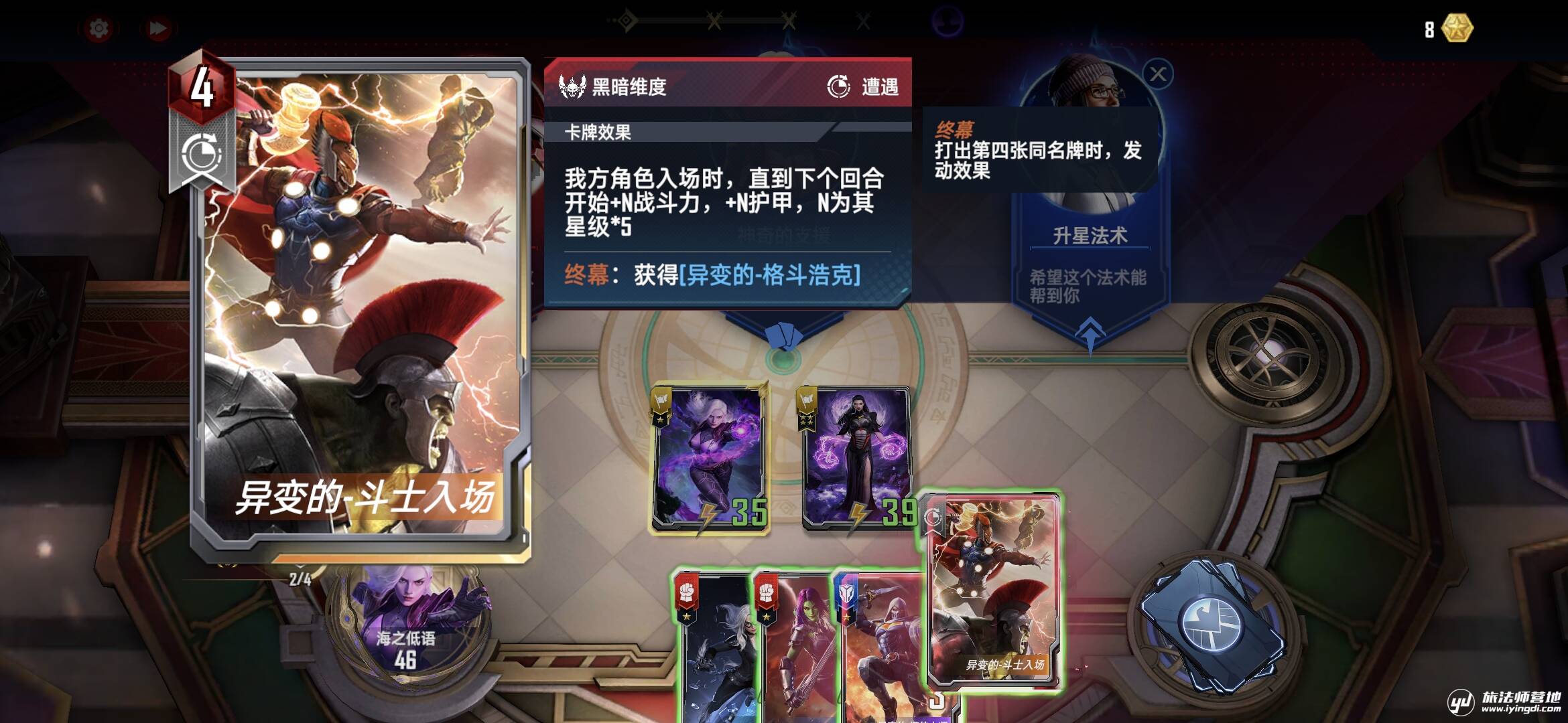 变异的—斗士入场:进场加战斗力护甲,没什么好说的,拉满4还能给一只变异的格斗浩克,入场摧毁对面战斗力最高单位,非常好用;
