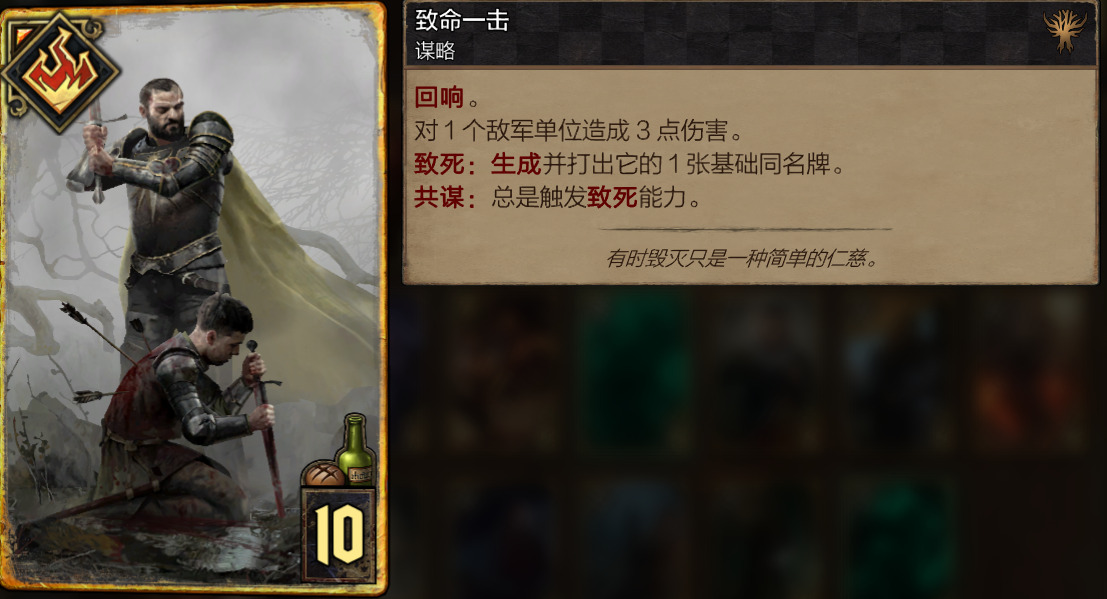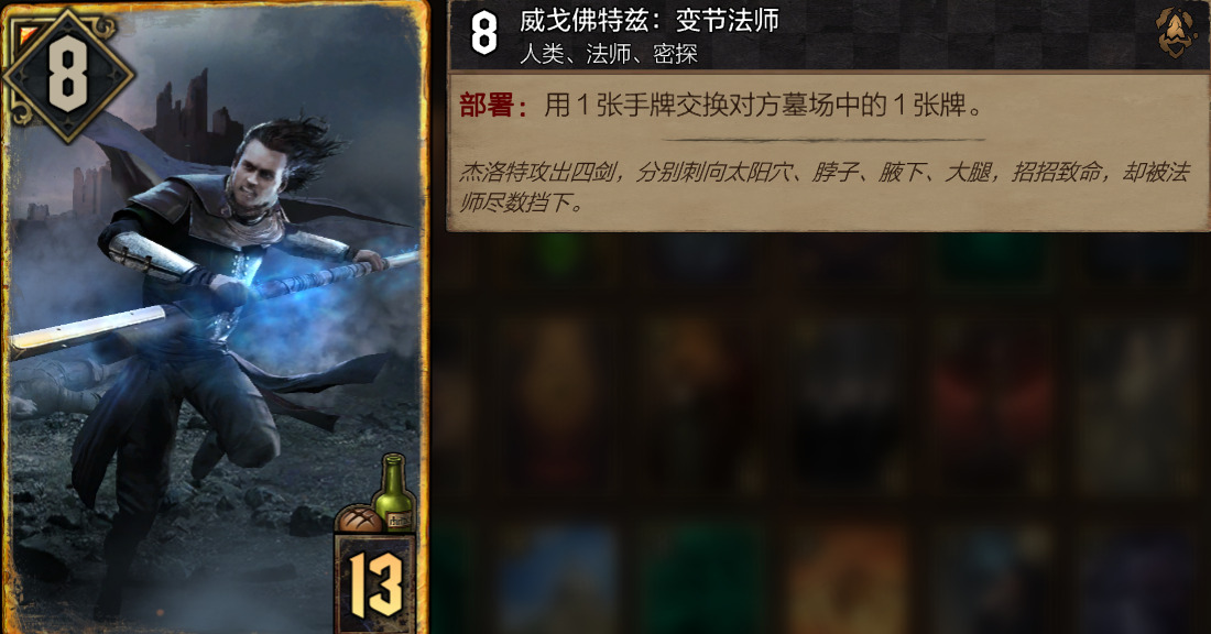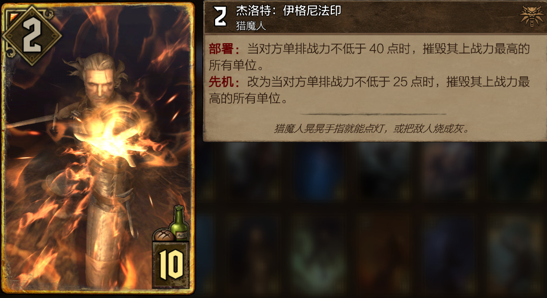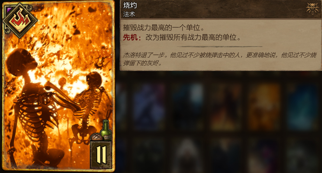 目前卡组对抗那些r1较弱不强势卡组,r3又没那么无脑强力的卡组,就属于必胜对局,就仅仅需要去防范下灼烧与杰洛特。