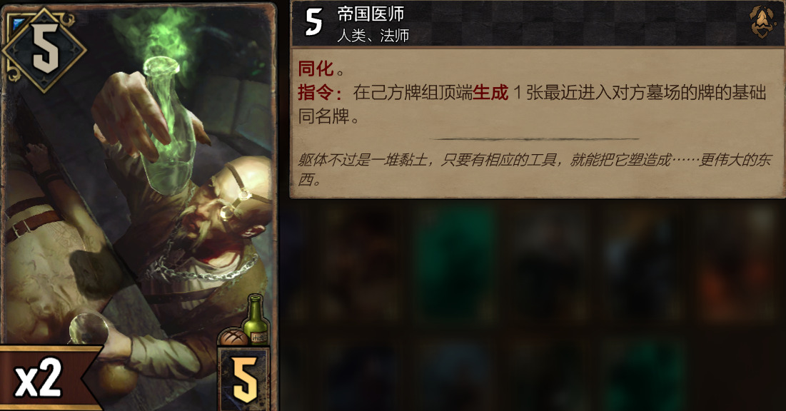 如果只有有一个帝国医生肯定是不够的,所以这里就需要提到其他几个卡牌。