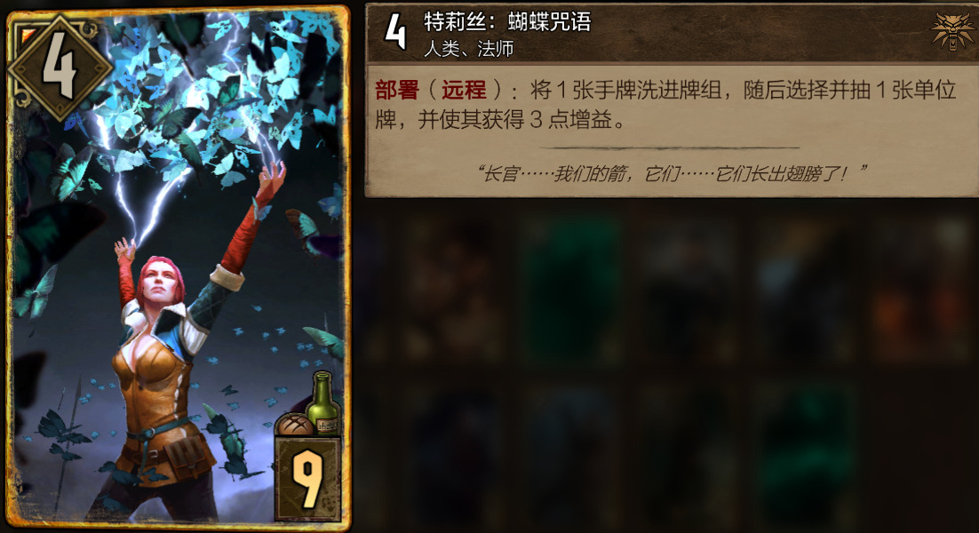 蝴蝶特里斯,如果r1组件齐全并不需要她过牌的话,就可以考虑将她洗入牌库,因为她能够产生奇效。