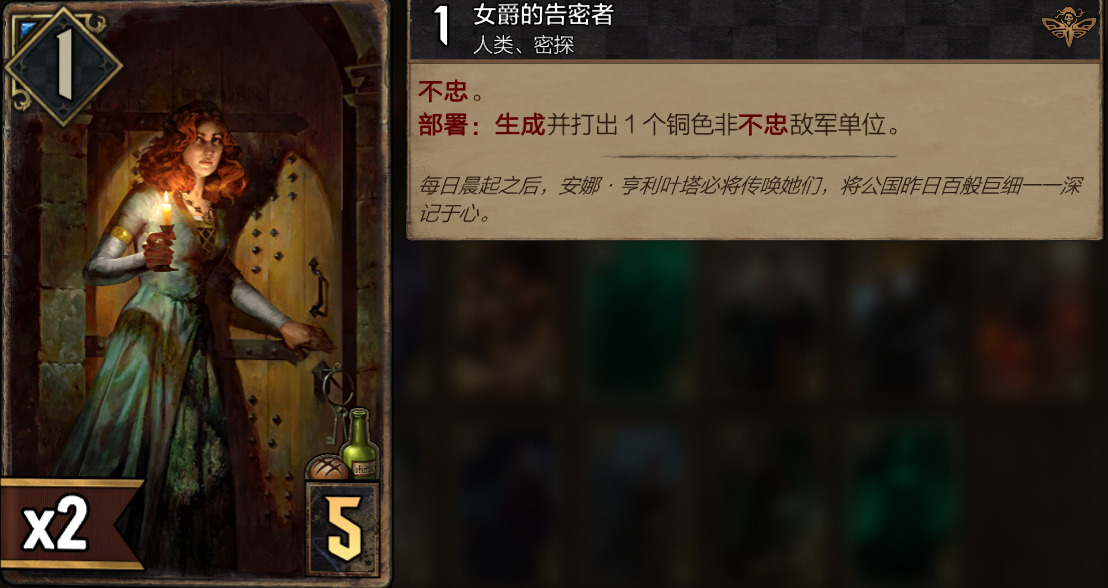 利用操纵者将帝国医生赋予对面,然后通过告密者体系的卡牌,大量复制对方的医生,以及自己技能指令复制,从而达到大量的帝国医生战场,同时利用同化的能力,做到r1的点数压制,对付那些r1劣势的卡组有奇效。
