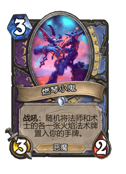 :随机将法师和术士的各一张火焰法术牌置入你的手牌。