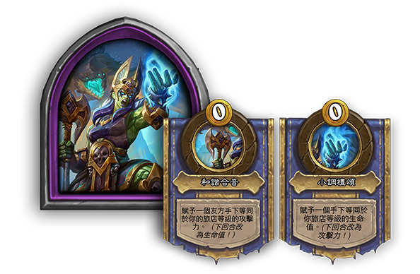 - 使一个随从获得等同于你酒馆等级的生命值(下回合切换为攻击力)