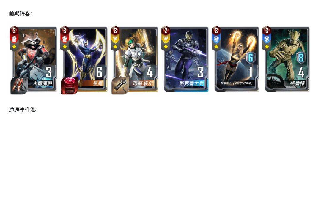 优点:造价很低,橙卡硬性需求只有星爵和玛丽,星爵2张够了,况且前一阵子送了一张。链接只需要玛丽和浣熊,这应该人人都开了吧