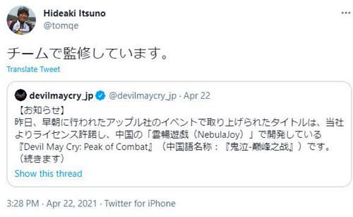 大家好,我是鬼泣系列制作人,伊津野英昭。