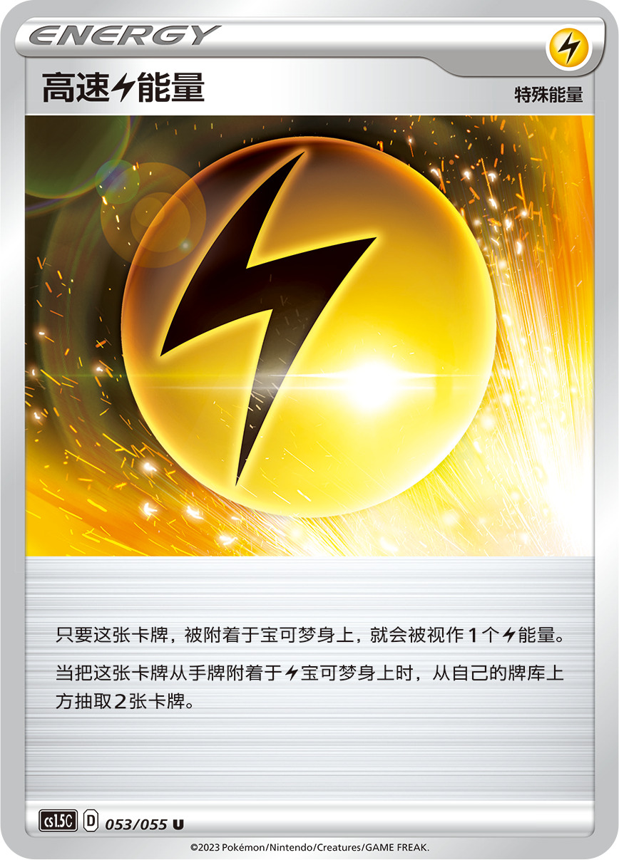 而当【高速雷能量】被附着于雷属性宝可梦身上时,可以从牌库抽取2张卡牌,迅速补充手牌为战局增添无限可能。