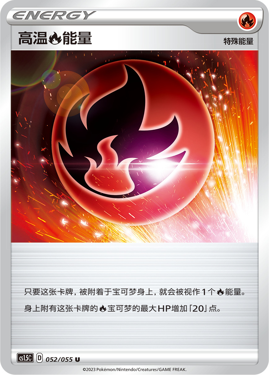 【高温火能量】可为被附着的火属性宝可梦增加20点最大HP,该效果还可以叠加哦,如果给焚焰蚣VMAX附着4个【高温火能量】,会有怎样的加强呢?