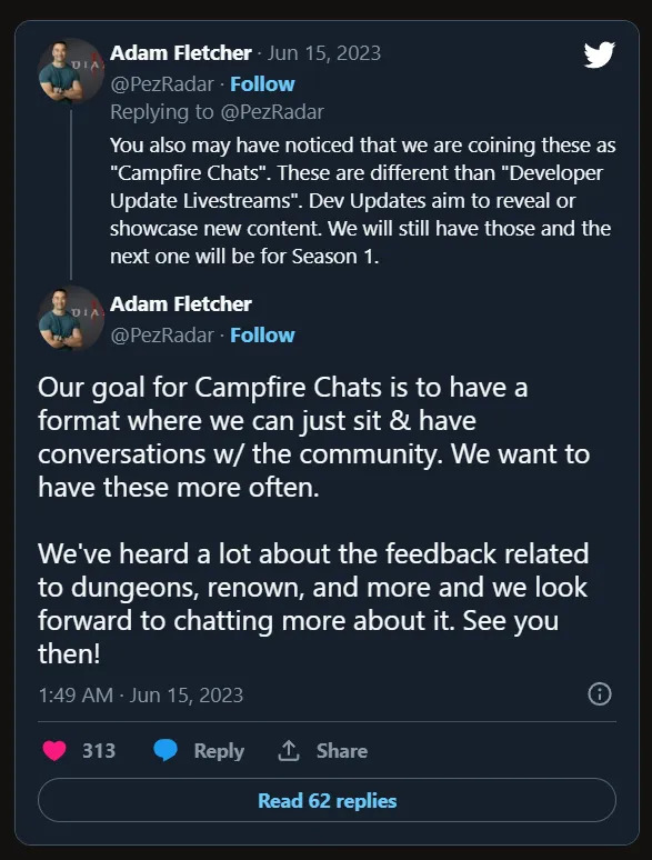 6 月 17 日北京时间上午 2 点,带上你最喜欢的烈性饮料,加入暗黑破坏神总经理 Rod Fergusson、游戏总监 Joe Shely、副制作总监 Tiffany Wat 和社区副总监 Adam Fletcher 的行列。该团队将详细介绍游戏的上线、收到的反馈,以及下一步计划。