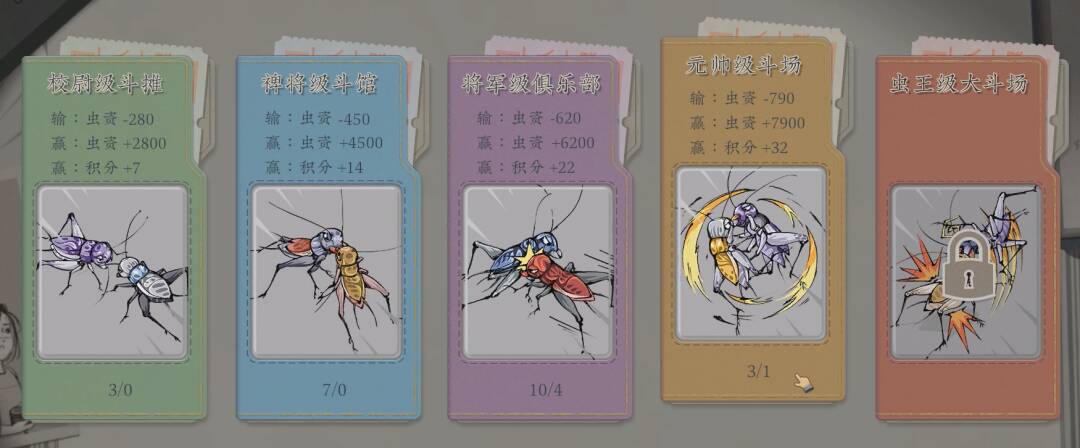不过,既然是个养成游戏,在购买了蟋蟀之后,如何进行培养也非常重要,而《 沉默的蟋蟀 》的养成系统做的也不错。