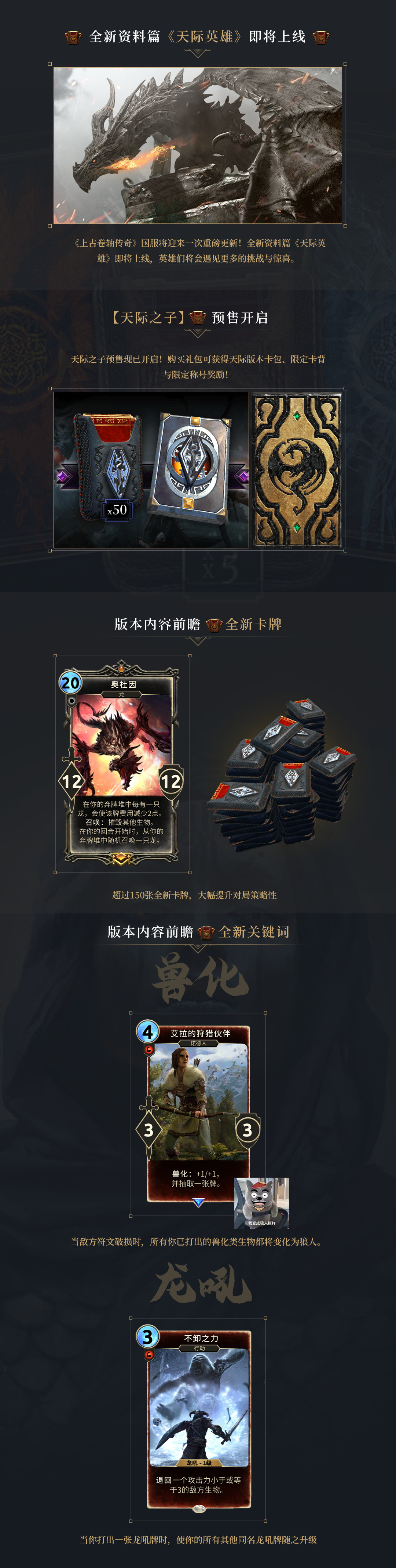 卡包【天际之子】预售现已开启!购买礼包可获得天际版本卡包、限定卡背与限定称号奖励!