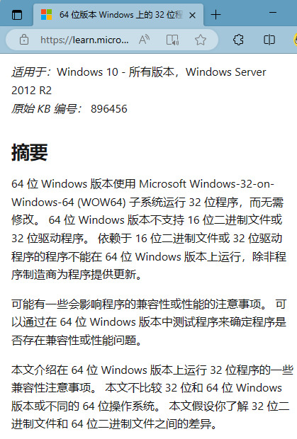 早在 WinXP 64 位版发布的时候,微软的程序员们就在系统里内置好了 “32 位 Windows 子系统”,能够以**无损且无感的方式转译 32 位程序到 64 位系统中执行。