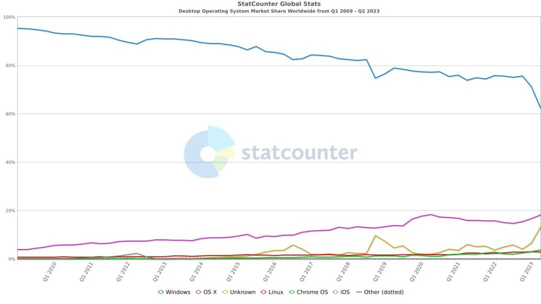 最近两年,苹果靠着 M 系列芯片疯狂吃走市场,传统 x86 电脑的市占率如山体滑坡。。。
