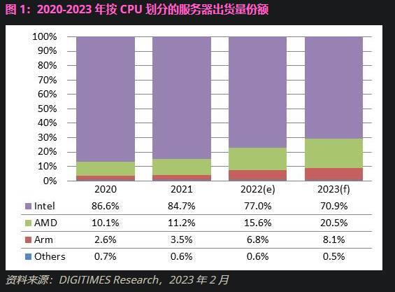 在服务器上,同样是 x86 节节败退,ARM 步步紧逼。