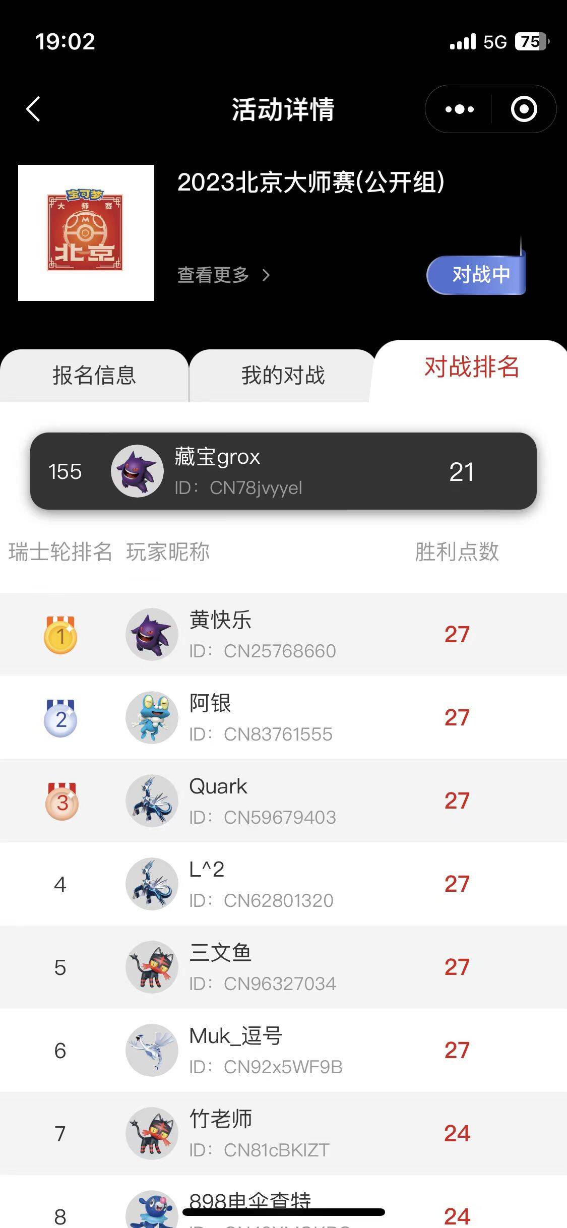 对手在状态火热的我&布鲁皇面前无力招架,最终,我的瑞士轮赛果定格在了7-2.
