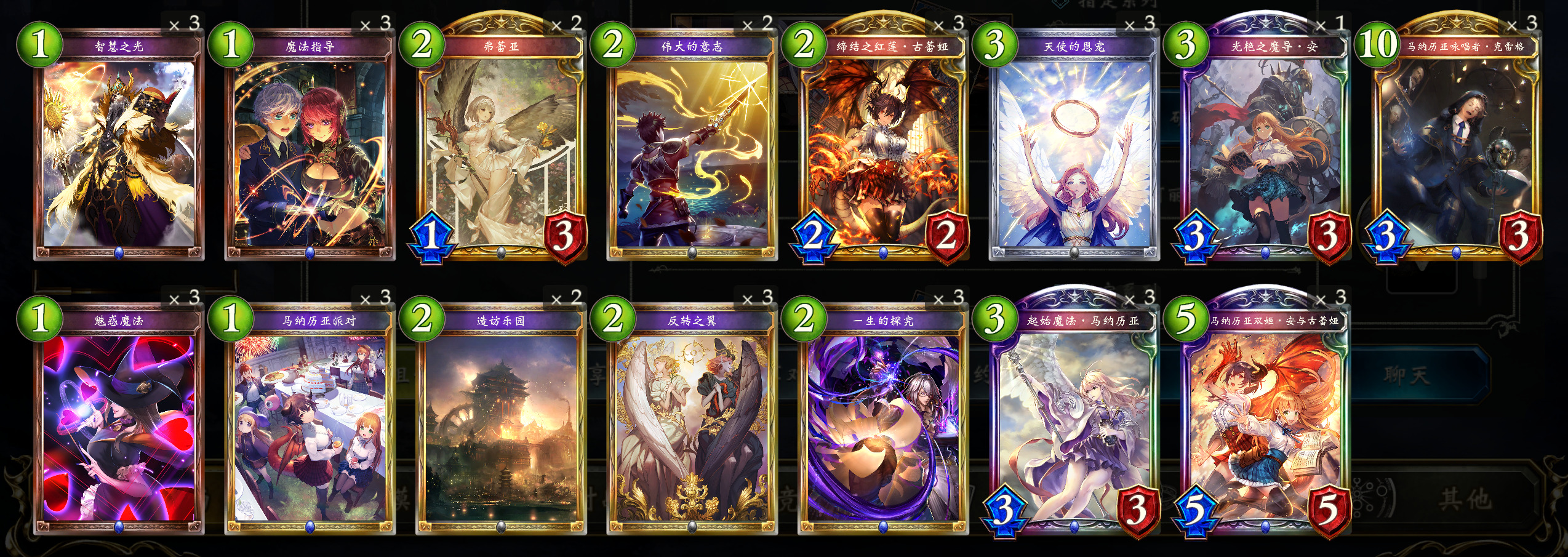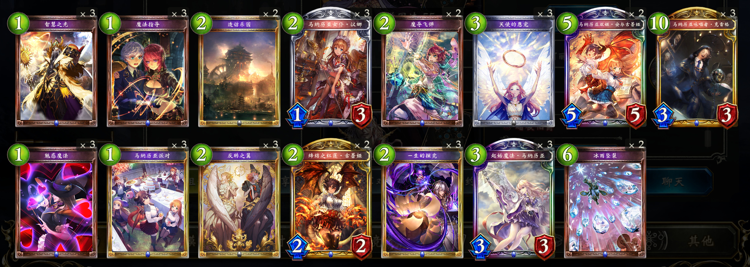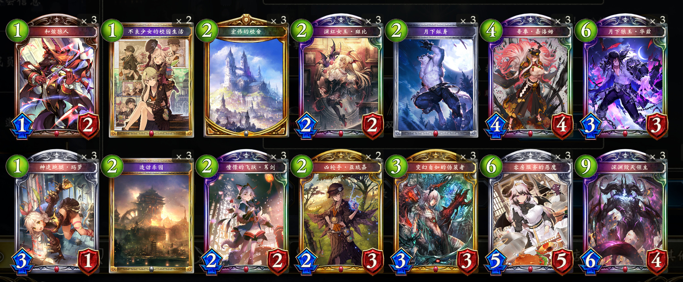 学园法是一套标准的中速组合技卡组,其主要发力点都集中于中期使用「双姬的大魔法」来OTK或是以「马纳历亚派对」buff后的场面压死对手取胜。