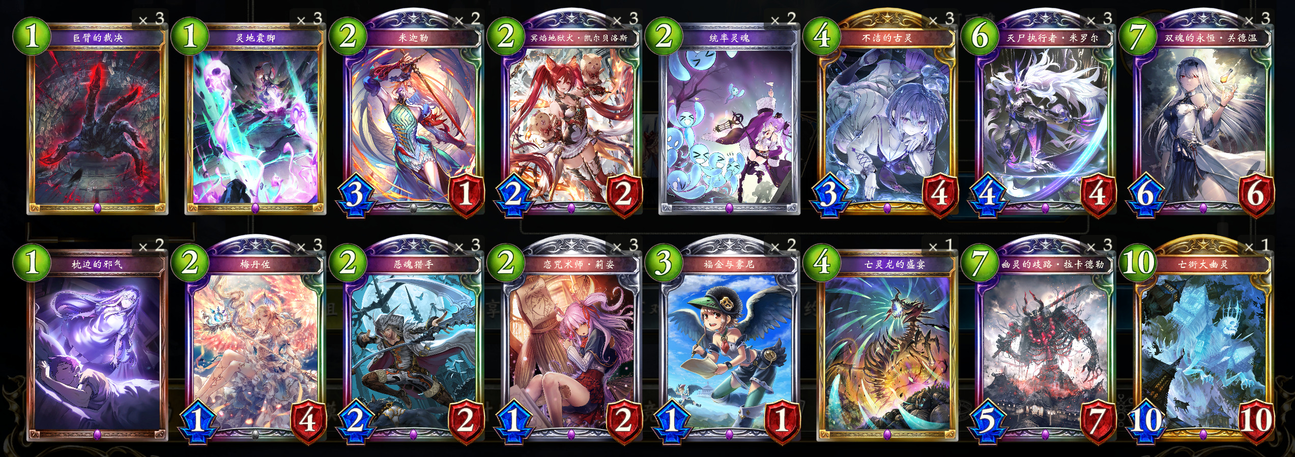 「天球天使」、「忠勇死尸犬」、「弗蕾亚」、「旅馆的幽灵犬」、「夜想教镰·玫美丹特」、「地狱中士」、「甜食唤灵师」、「狩灵少女」(通常和「亡灵龙的盛宴」一起带)、「因果的迷途之子·安瑟珠」、「冥域的烈牙·欧特鲁斯」、「腐尸海德拉」