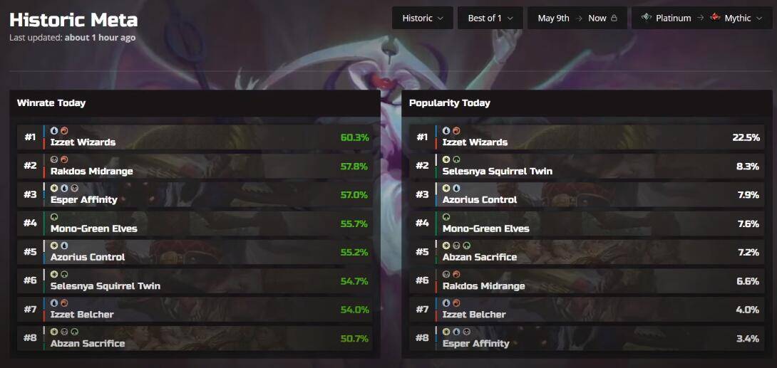 数据来源6月22日至6月29日,MTGA钻石到秘稀段位,高胜率套牌推荐,史迹赛制BO1