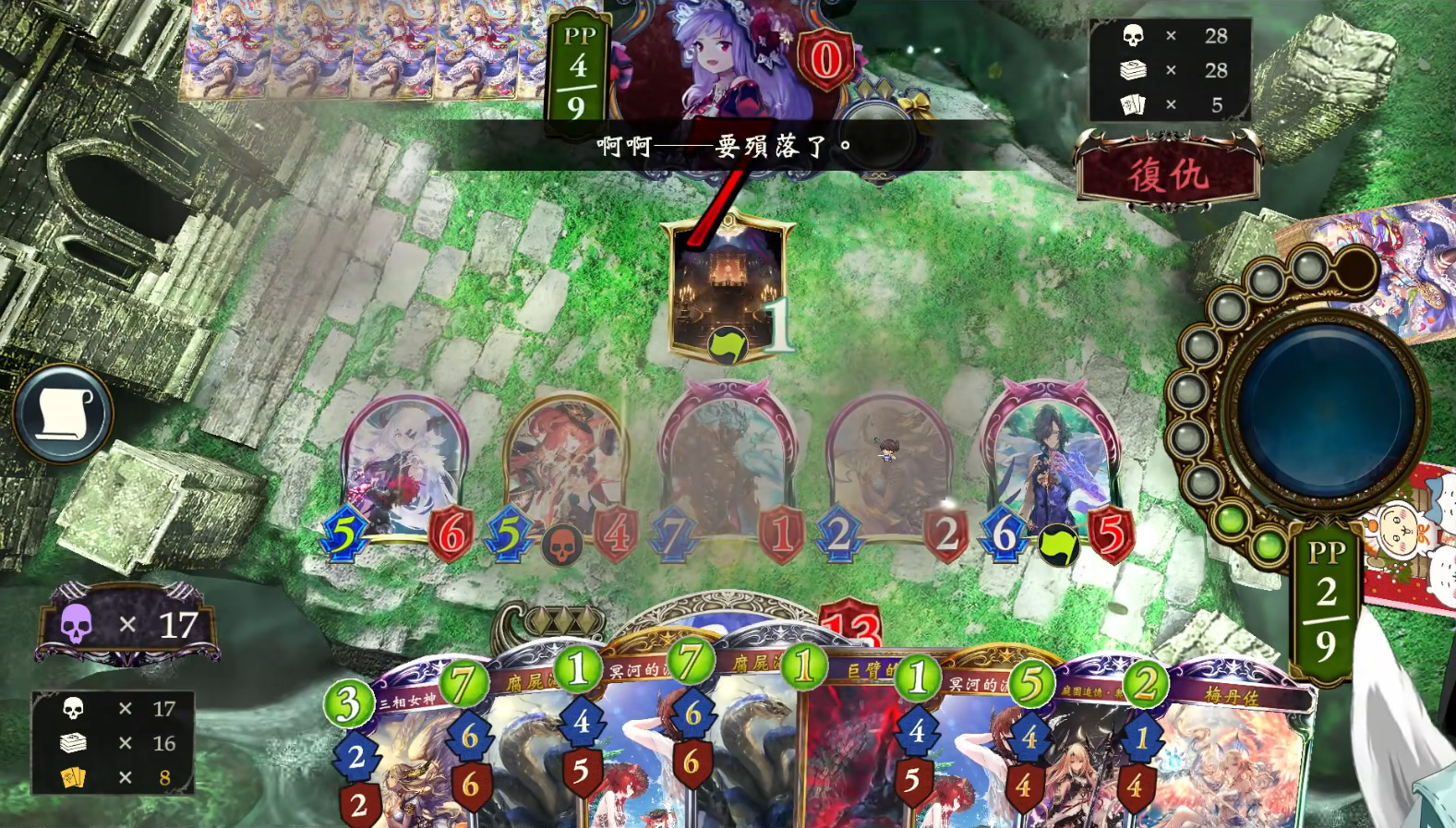 在这套牌中,狩魂有5种不同费用的随从可复活,但实战中往往无法凑齐5种,因此不必担心复活的随机性。其中,深渊上校、幽魂的歧路·拉卡德勒和冥河的流葬·凯伦都带守护,而腐尸海德拉则有极强的赖场能力,在被复活后还能获得“1回合可攻击2次”效果,制胜能力很强。灭尸执行者·米罗尔和冥域的烈牙·欧特鲁斯都不是复活的好目标,但她们能作为葬送源和解场手段发挥过渡作用,与巨臂的裁决、灵魂出窍、凯伦一同将需要复活的随从送入墓场。