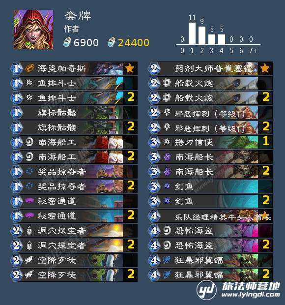 先手:131鱼排斗士、113旗标骷髅、秘密通道(手里有1费海盗,2费抽刀的情况下可以留着补资源)、洞穴探宝者(必留)、空降歹徒(如果手里已经有1费海盗可以留)、药剂大师(起手没有洞穴探宝者可以留)、剑鱼(必留)、南海船长(手里有113旗标骷髅且没剑鱼没2费节奏的情况下可以留)、狂暴邪翼蝠(手里有空降歹徒即2费在被解掉一个随从的情况下还能减到0费的话可以留)