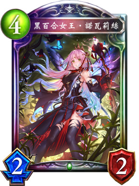 黑百合女王·诺瓦莉丝是使用示天龙剑牌池的最大理由。她能配合绿水妖精等妖精制造者高效抢血,惩罚前期解场能力不足的对手,例如现在常见的弃牌龙、超越法。