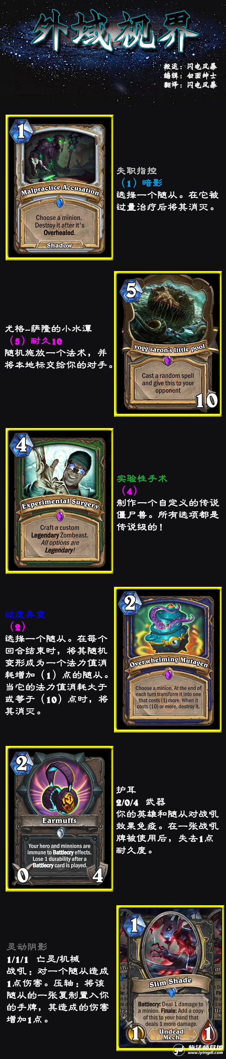 常见的关键词设计主要有以下几种:状语(战吼)、形容词(可交易)、名词(零件)和动词(进化),用以修饰动词的副词类关键词还蛮少见的。这里面或许还能写出更有趣的东西来。