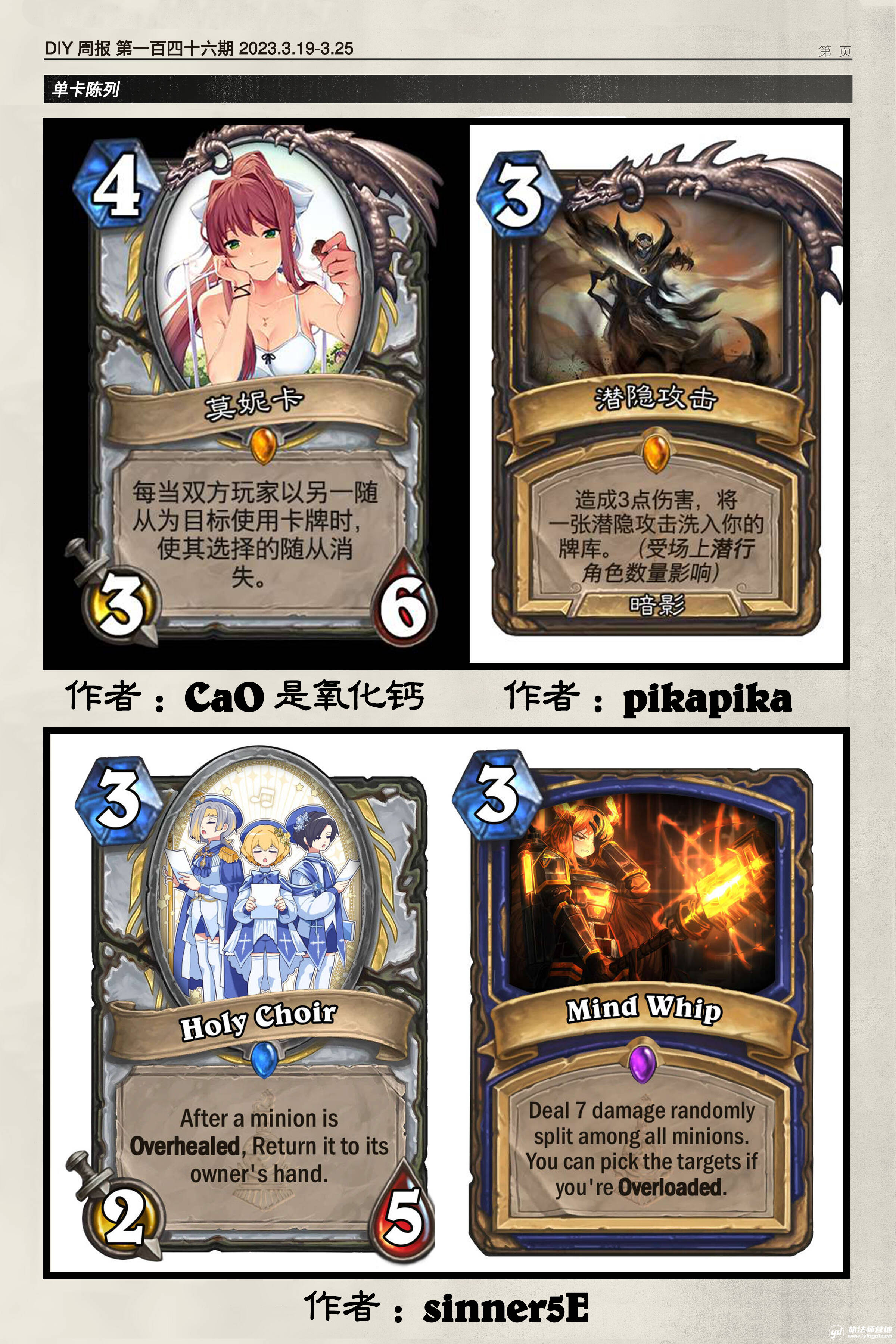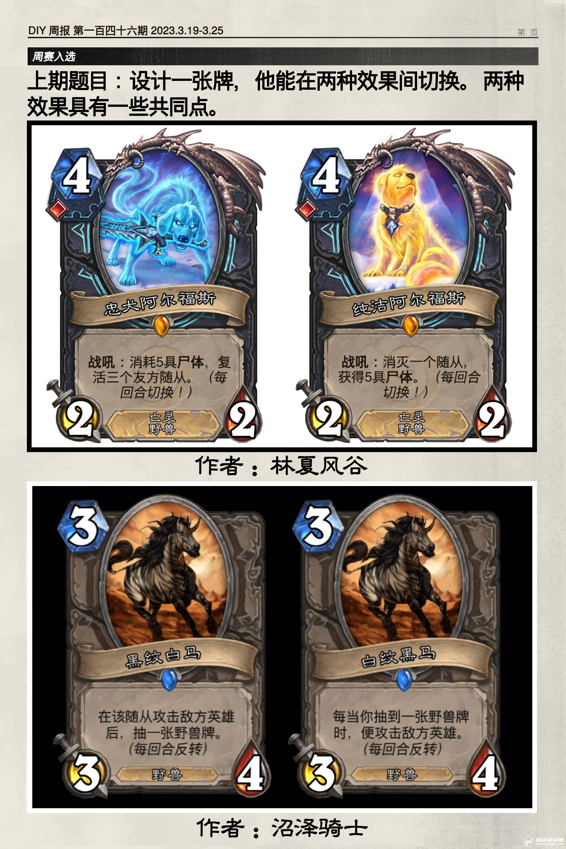 小中见大式的题目。这道题常常出现在大型比赛的海选阶段——比赛的全流程是设计一个扩展包/一个新职业,而选手在第一轮需要尽可能展示出其中的主要亮点。另外,出乎我的意料,在这样一道明显是比拼旧稿的题目中,出题人没有选那些明显的旧作。可见琢磨出题人的心思也是很重要的。
