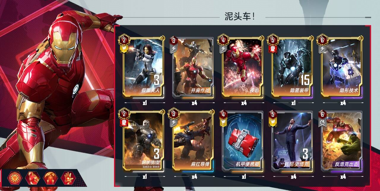 钢铁侠的技能不给宝石并且对我们的卡组没有帮助,基本不选