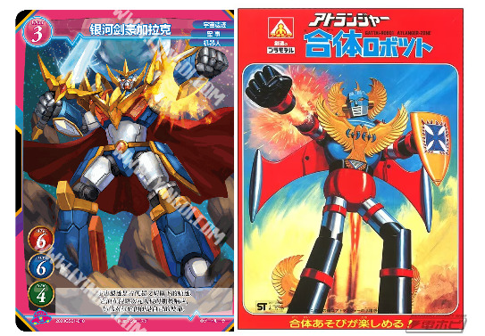 在卡图的设计上,加拉克喷射而出的火箭拳、以及手中的利剑,还有屹立于蓝天之下的站姿,都与ATLANGER的早期宣传图非常相似。