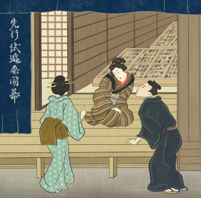 在一幅于1723年流传下来的日本国宝浮世绘上,几名男女正在玩一款类似于卡牌的游戏,而且画面中可以看到屋外庭院中有几张类似于《万智牌》中的卡牌“黑莲花”,这更加佐证了研究团队的看法。