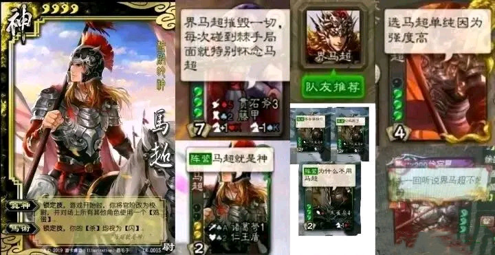 对于《三国杀》玩家来说,“马神”是一个荣誉称号。马钧是马神,三国杀第一辅助,一手转转图,出场就能够收获全场花束。马良是马神,平民神将,玩家手中性价比之选,将魂合成第一位。马岱是马神,降体力上限的物理完杀,告诉大家什么叫华佗再世都没用。还有玩家最认可的“马神”—界马超。