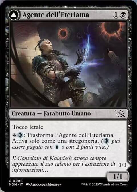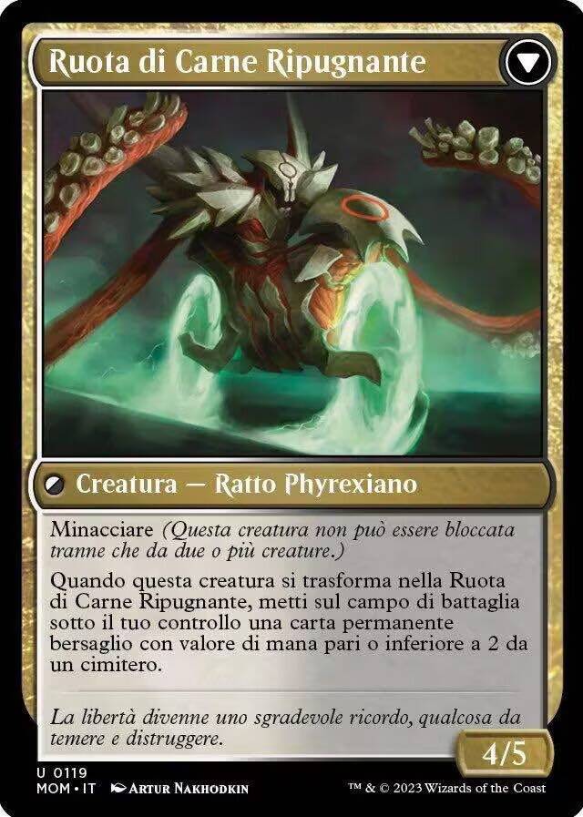 (背面)威慑,~转化时从一个坟场捞目标法术力值2以下永久物牌,在你的操控下进战场