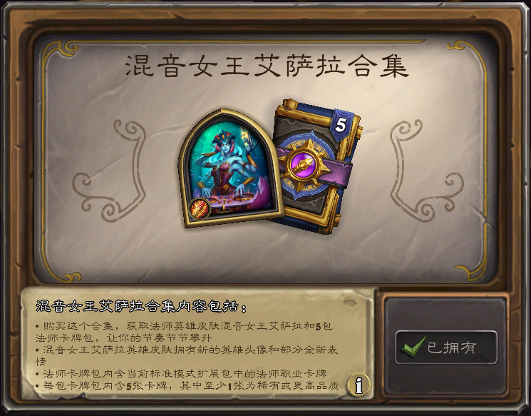 含构筑模式法师新皮肤“混音女王艾萨拉”和5法师包,售价1000符文石。