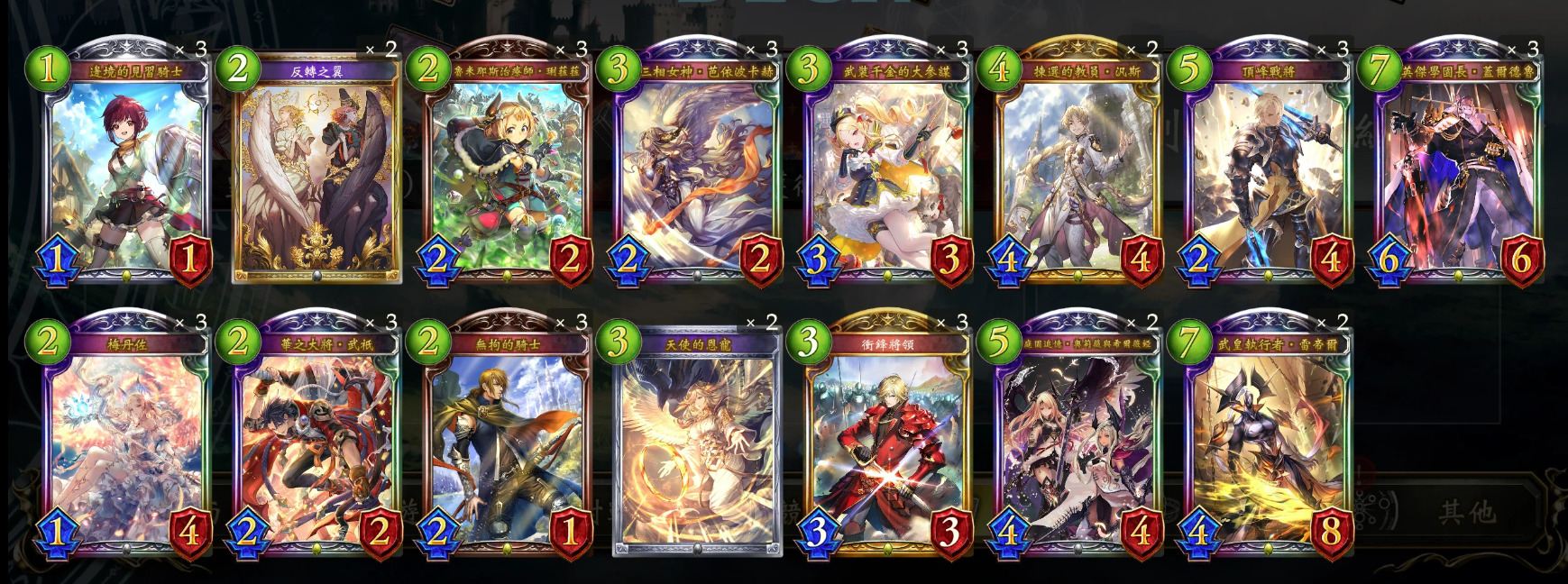 -可选卡位:「怒涛副船长」、「乌拉诺斯」、「出航的罪人·巴巴洛丝」、「荣光剑士·奥蕾莉亚」、「巨型快乐小猪」、「尽忠看守」&「战场纪录」、「贵族盾兵」、「传说之剑指挥官」