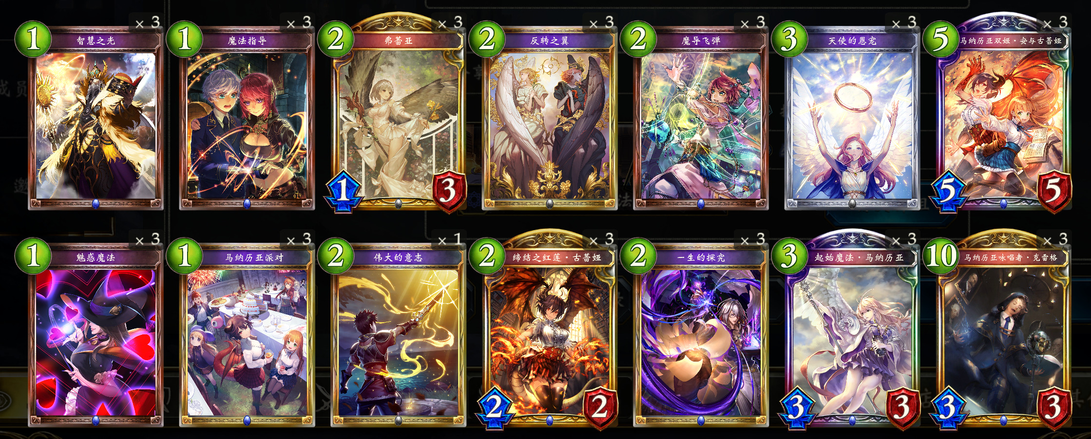 -可选卡位:「预见的魔法师」、「童话公主·爱玛莉莉丝」(使用手感非常差,慎带)、「魅惑魔法」、「弗蕾亚」、「传奇教师·路西乌斯」、「乌拉诺斯」、「真理的大文豪·幸岛」